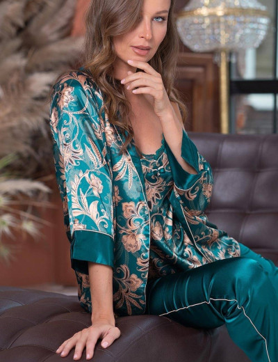 Шелковая пижама тройка Mia-Amore EMERALD 3786