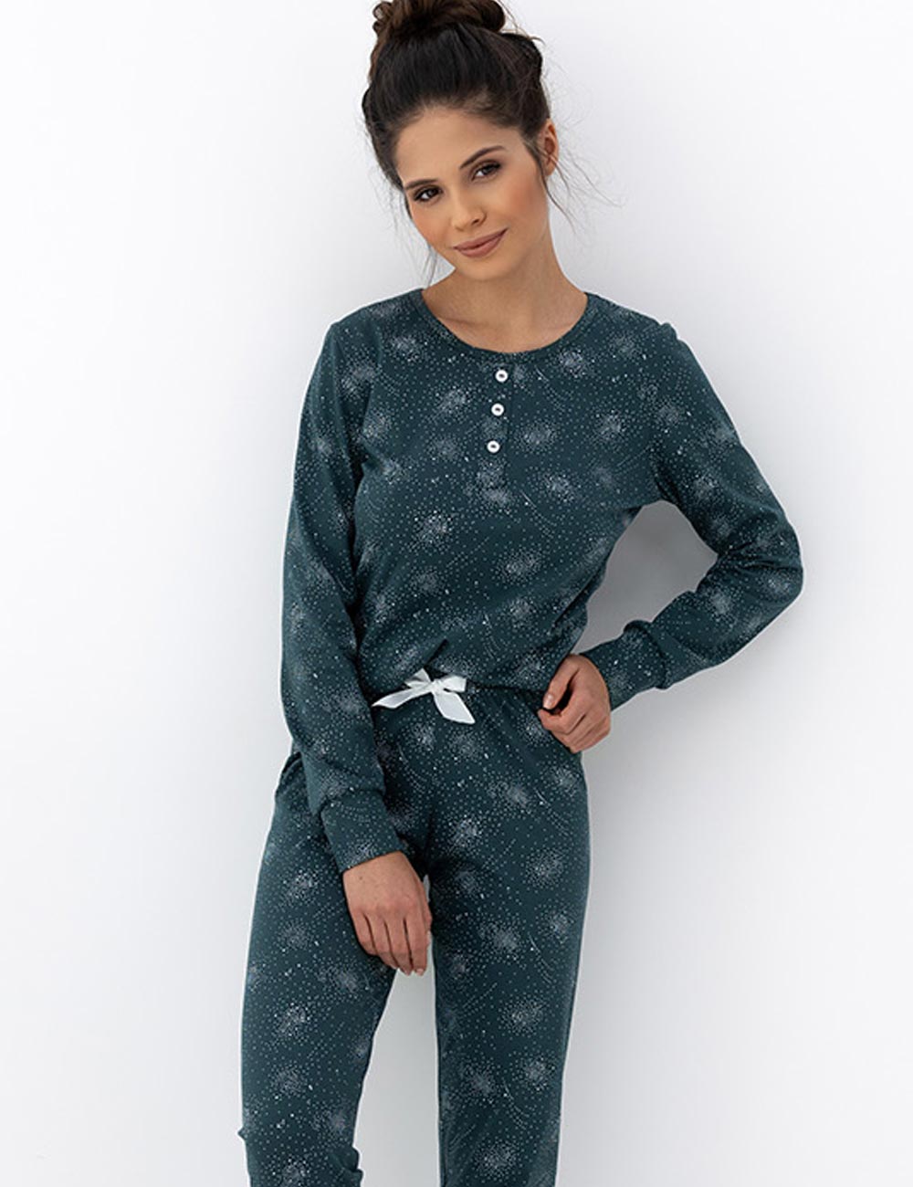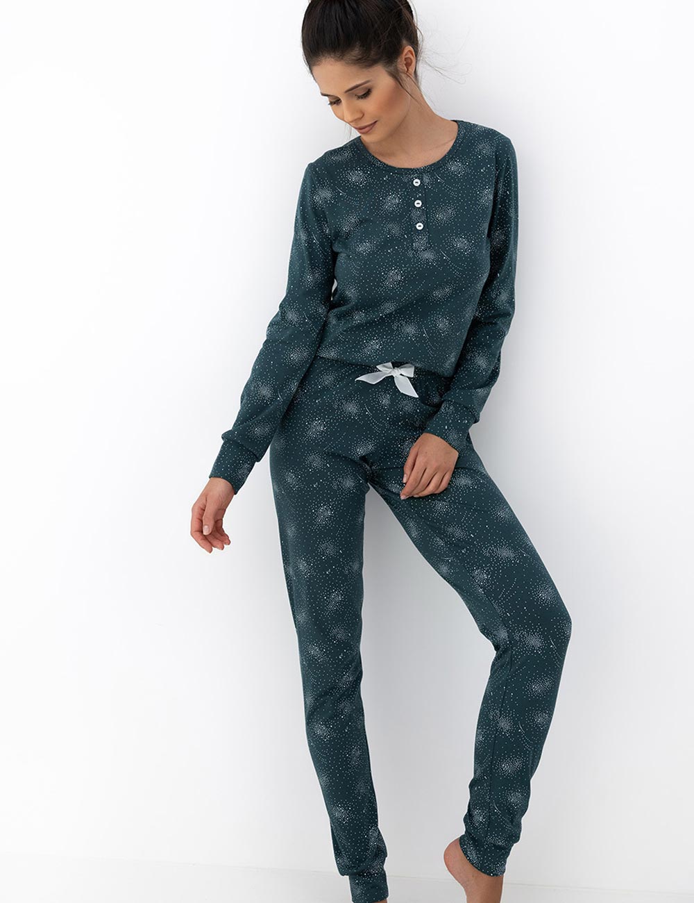 Домашний комплект ELLISON от польского бренда Sensis, выполненный из мягкого хлопка с принтом, включает зауженные брюки и лонгслив с длинными рукавами. Этот комплект идеально подходит как для сна, так и для отдыха дома.