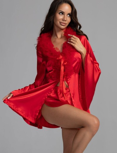 Атласный пеньюар с топом и шортами Mia-Amore LOLI 2315 красный