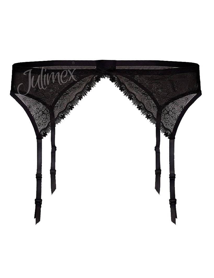 Изящный пояс для чулок из коллекции РОЗА в черном цвете. Выполнен из полупрозрачного сетчатого полотна, декорирован нежной вышивкой с цветочными узорами. Верх украшен небольшим бантом, а низ - плоской декоративной окантовкой. Регулируемые пажи для чулок и застежка на спине.