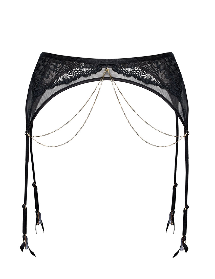 Черный пояс для чулок Esotiq CROWN 43751 сочетает минимализм и чувственность в современном дизайне. Сетка и прозрачное кружево с выразительным узором создают элегантный силуэт, а ювелирные съемные подвески притягивают взгляд к талии, добавляя блеск. Идеальный финал для соблазнительного ансамбля, подчеркивающий женственность.