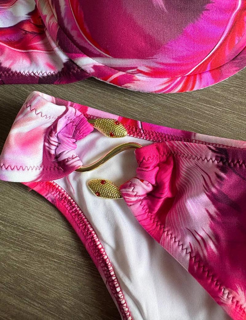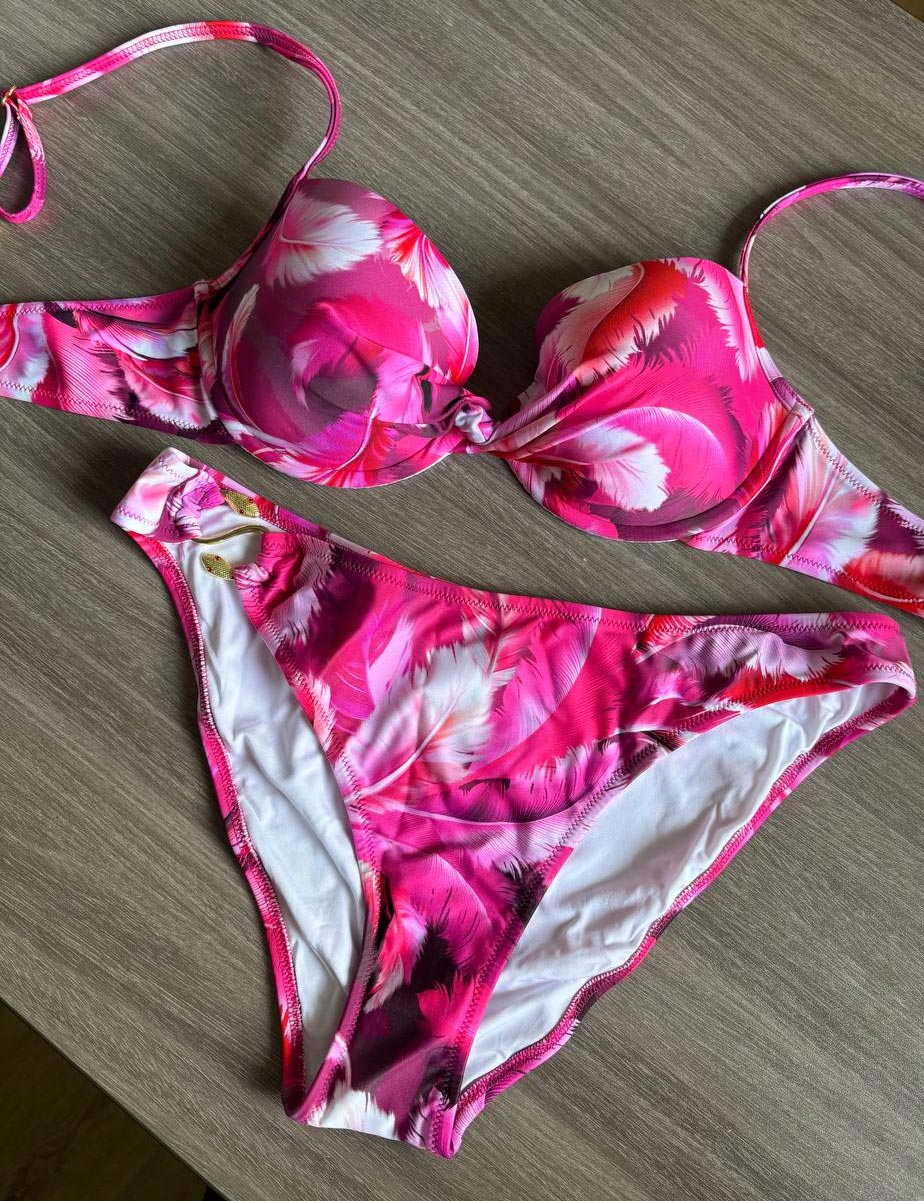 Раздельный купальник от румынского бренда Jolidon модель FR233i выполнен из из быстросохнущего эластичного полотна в красивой расцветке из розовой гаммы цветов сочетающихся в абстрактном узоре.