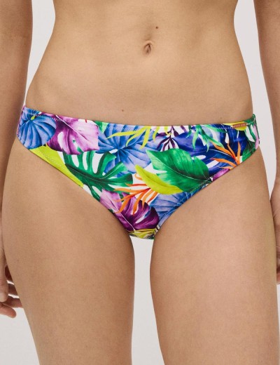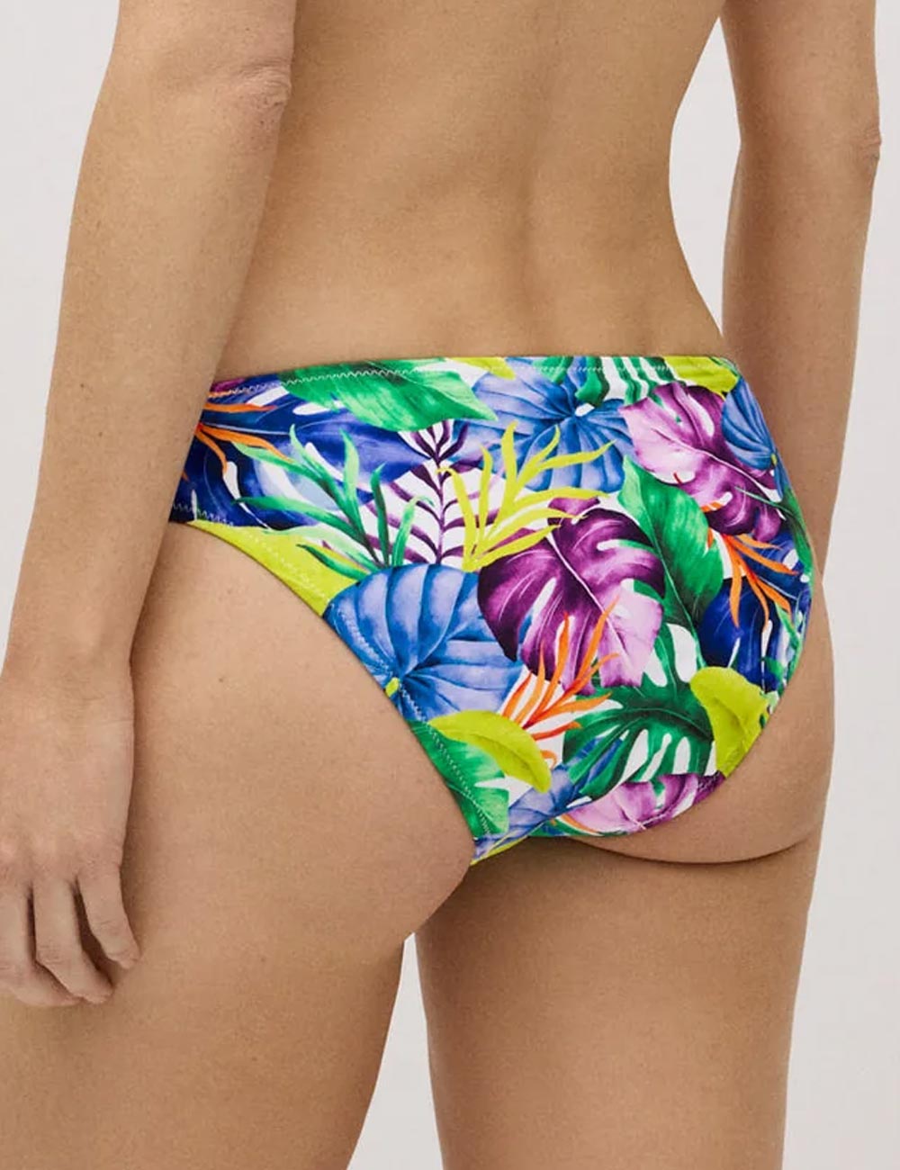 Женские плавки от испанского бренда Ysabel Mora модель SALINA 83014 выполнен из быстросохнущего эластичного полотна в яркой расцветке с тропическим принтом. Классический фасон с низкой посадкой и закрытым силуэтом сзади. Они обеспечивают комфорт, при этом выглядят стильно и универсально подходят для разных типов фигуры.