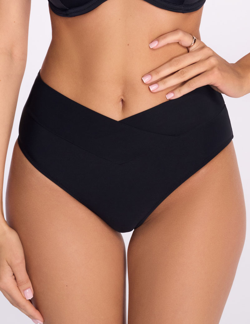 Черные женские плавки Ava SF13/19 — элегантные бразилиана из прочной микрофибры с деликатной драпировкой на спинке, визуально подчеркивающей форму ягодиц. Универсальный крой идеально садится по фигуре, тонко акцентирует талию и идеально сочетается с любым верхом.
