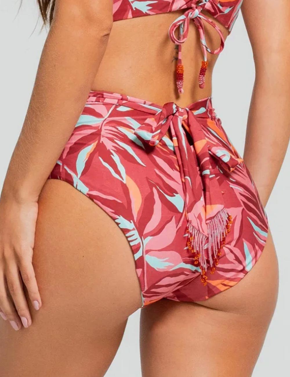 Низ купальника Cosita Linda CLH26046 из коллекции RAINFOREST RADIANCE с высокой посадкой, которая подчеркивает линию талии. Изюминка модели пояс с завязками, декорированный вышивкой из бисера.