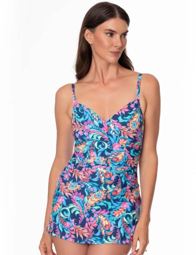 Цельный купальник с юбочкой JZ26275M от американского бренда Jantzen - отличный выбор для тех, кто чувствует себя неуверенно на пляже из-за несовершенства фигуры. Элегантный и функциональный дизайн гармонично сочетает стиль и удобство.