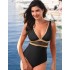 Совместный купальник от польского бренда Ewlon, модель K.6409, выполнен в эффектной синей расцветке и декорирован золотистой отделкой, подчёркивающей область декольте. Мягко облегает тело, не сковывая движений, выглядит гармонично и стильно.