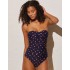 Совместный купальник от испанского бренда Ysabel Mora модель 82295 выполнен из качественного быстросохнущего эластичного полотна темно-зеленого цвета с контрастным принтом в горох.