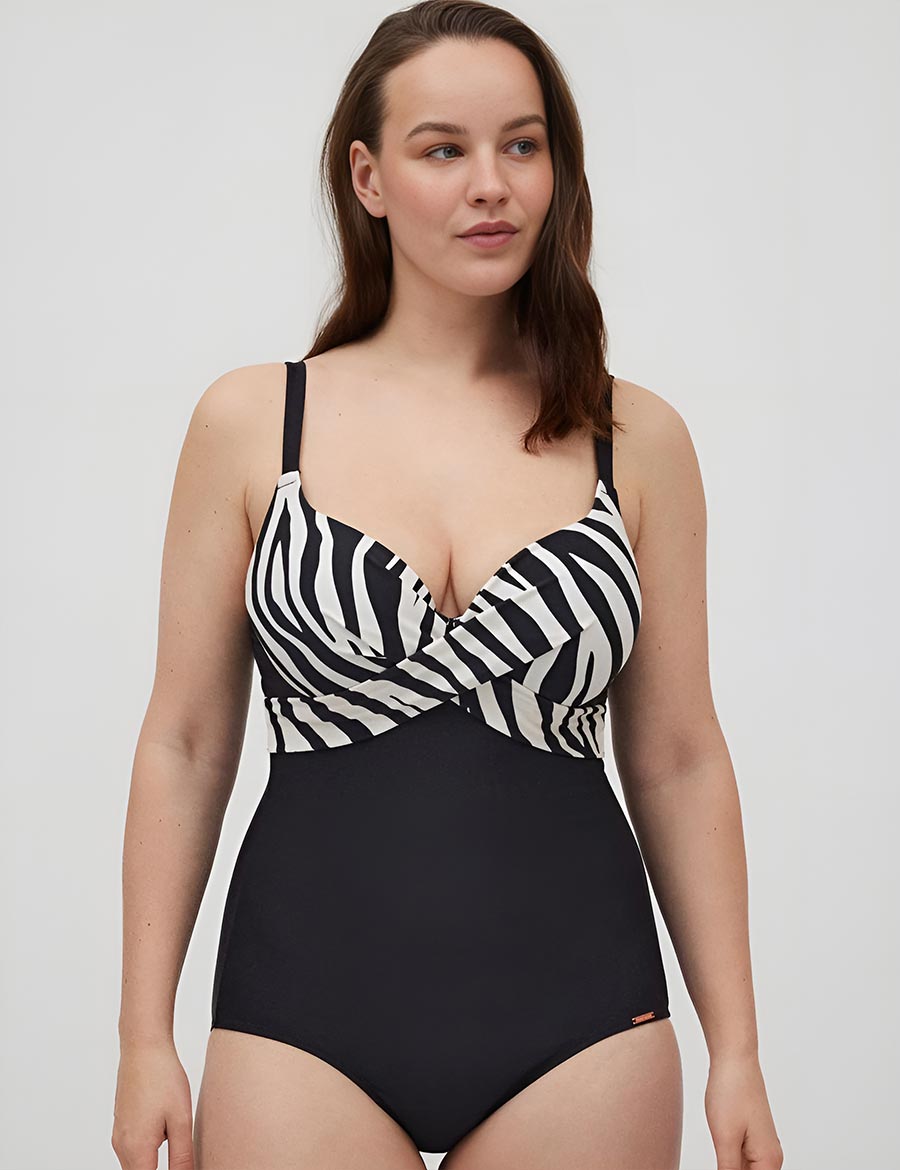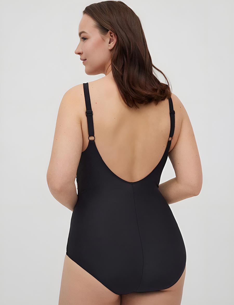Слитный купальник от испанского бренда Ysabel Mora модель ANTAO 83078 выполнен из эластичного полотна в классической чёрной расцветке с принтованной вставкой на лифе. Глубокие чашечки-минимайзеры делают силуэт плавным, визуально уменьшая грудь на целый размер. Удобный крой модели и стильный внешний вид актуальны для плавания в бассейне, отдыха на пляже и незабываемых фотосессий.