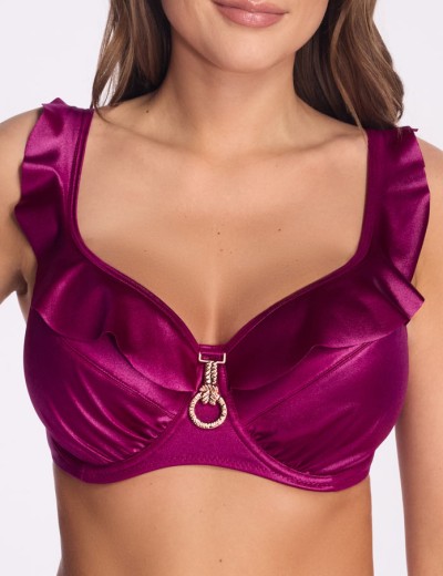 Бюстгальтер пляжный Ava модель MAGENTA SK249 в ярком цвете фуксии идеально подходит для пышных форм. Мягкие чашки на косточках, с драпировкой снизу, обеспечивают надежную поддержку, а игривые рюши добавляют образу легкость. Эластичная ткань с деликатным блеском дарит комфорт, помогая чувствовать себя уверенно и притягательно на любом побережье.