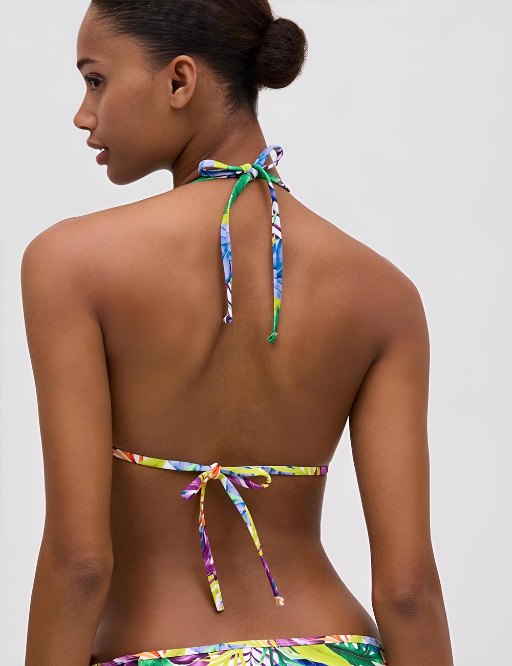 Бюст с треугольными чашками пуш-ап от испанского бренда Ysabel Mora модель SALINA 83011 выполнен из быстросохнущего эластичного полотна в яркой расцветке с тропическим принтом. С формованной чашкой пуш-ап, на завязках, красиво сформирует и приподнимет грудь, выгодно подчеркнёт её округлость.