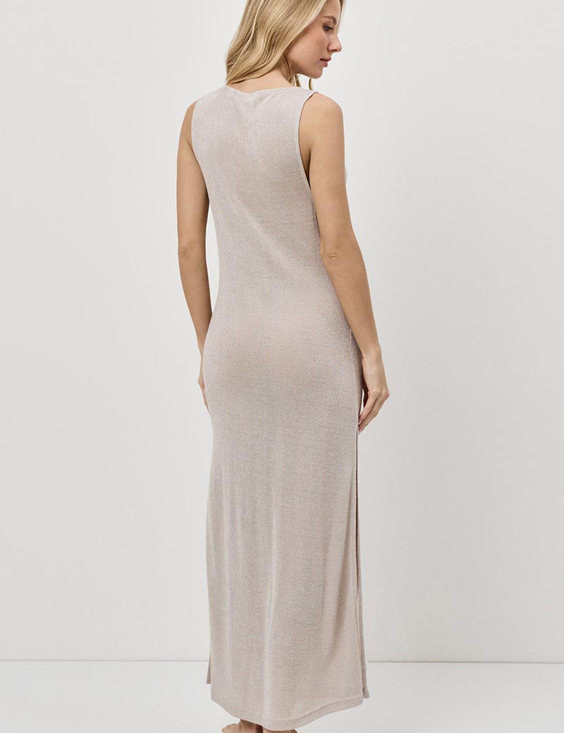 Изящное платье GLOW от литовского бренда Aruelle словно создано для того, чтобы эффектно сиять при каждом движении. Оно изготовлено из легкой вискозы с серебристым люрексом, что придает ему нежное мерцание. Модель длиной до щиколотки с деликатным металлическим блеском идеально подходит как для повседневных образов, так и для особых случаев.
