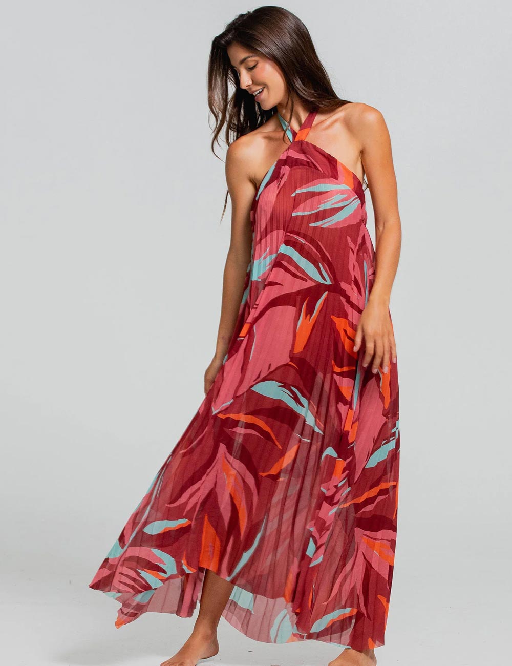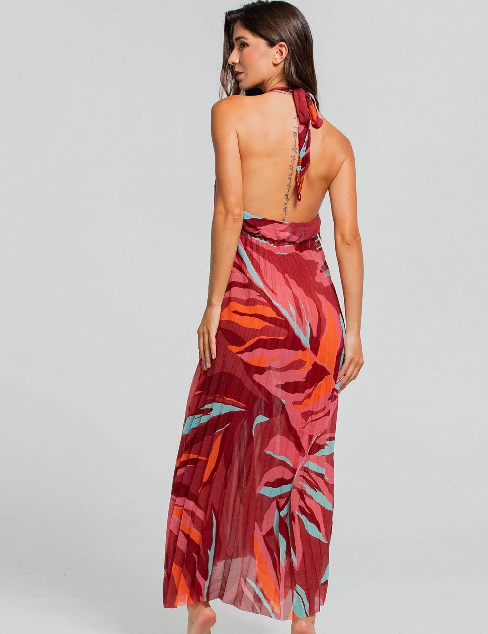 Платье Cosita Linda CLC26052 из коллекции RAINFOREST RADIANCE предназначено для пляжного отдыха. Его изящный силуэт, струящаяся ткань и открытая спина создают утонченный и нежный образ. Бретель через шею добавляет элегантности, а плиссировка придает движениям плавность. Легкость материала делает платье идеальным для вечерних прогулок, подчеркивая его универсальность и изысканность.