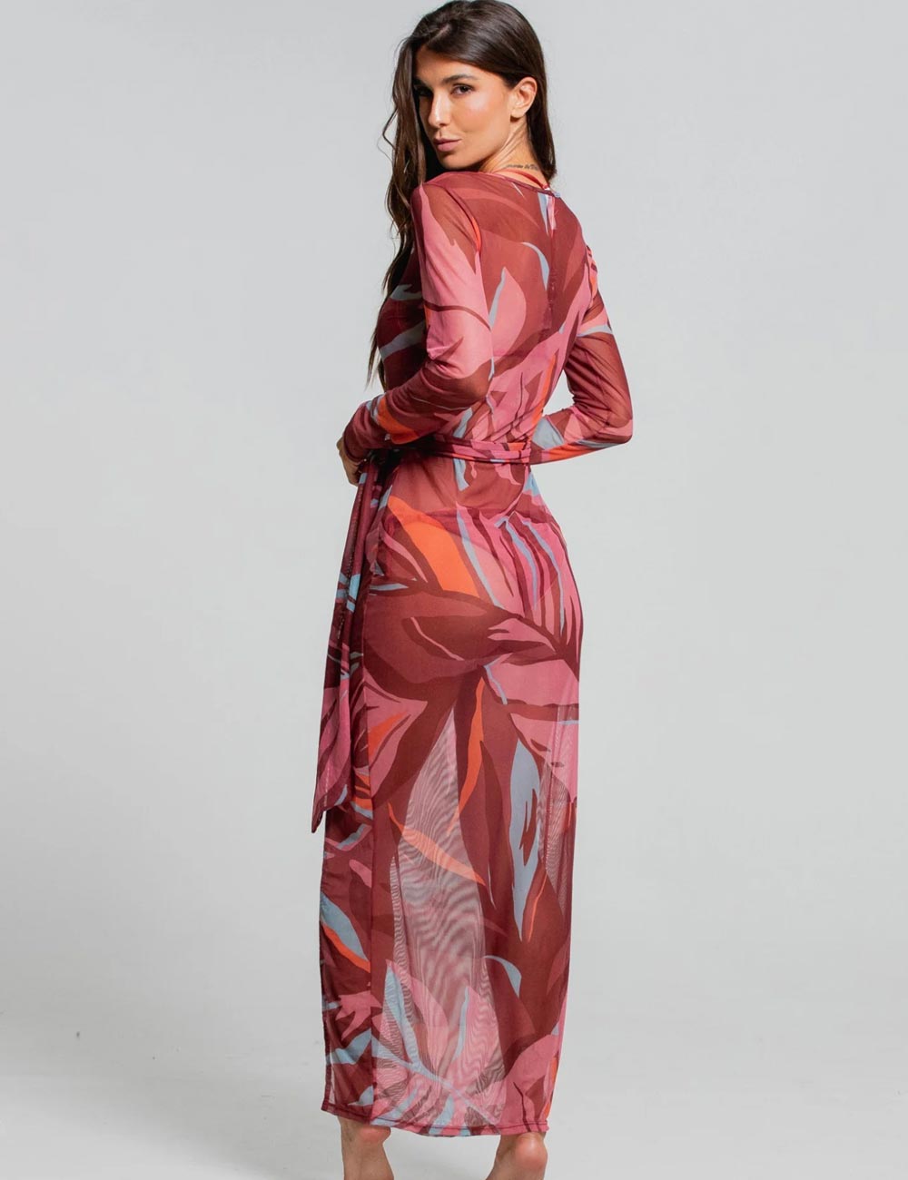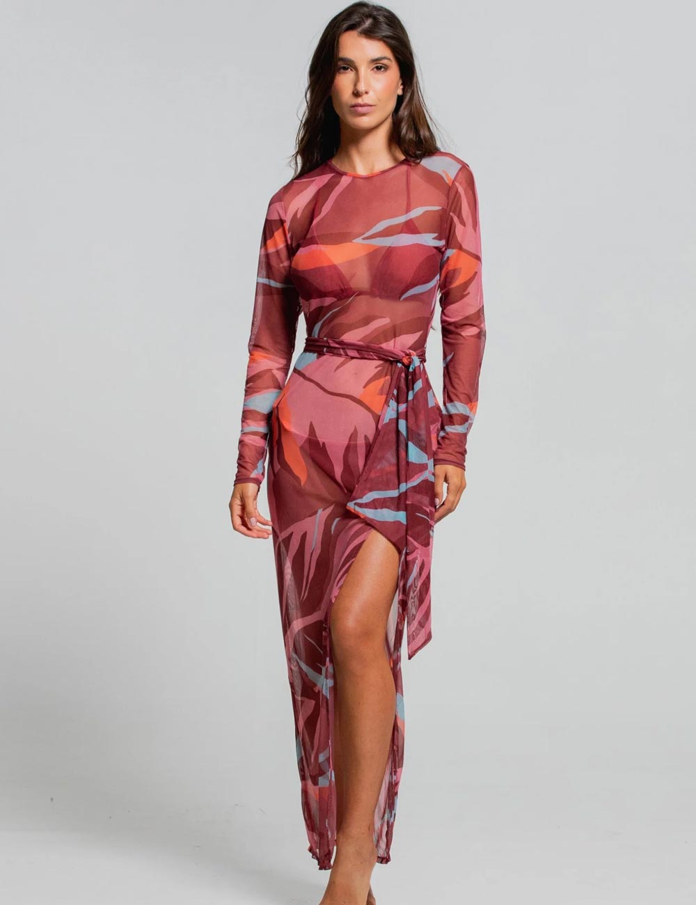 Чувственное платье Cosita Linda CLC26053 из пляжной коллекции RAINFOREST RADIANCE идеально подойдет для отдыха у моря или бассейна, добавит легкости и дополнит любой пляжный стиль. С длинным рукавом и изысканным силуэтом, украшено боковым разрезом и поясом, что придает ему утонченный и женственный вид. Благодаря мягкой драпировке, оно идеально подходит для вечерних мероприятий, выгодно подчеркивая фигуру и создавая элегантный образ.