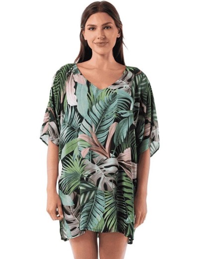 Легкая туника от американского бренда Jantzen модель JZ25208C изготовлена из 100% вискозы и представлена в изысканной тропической гамме. Она станет отличным выбором для отдыха на пляже или у бассейна, привнеся свежесть и дополнив любой пляжный образ.