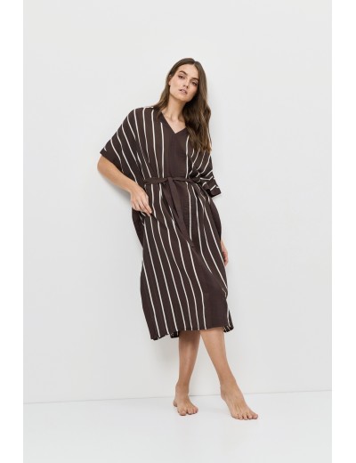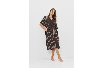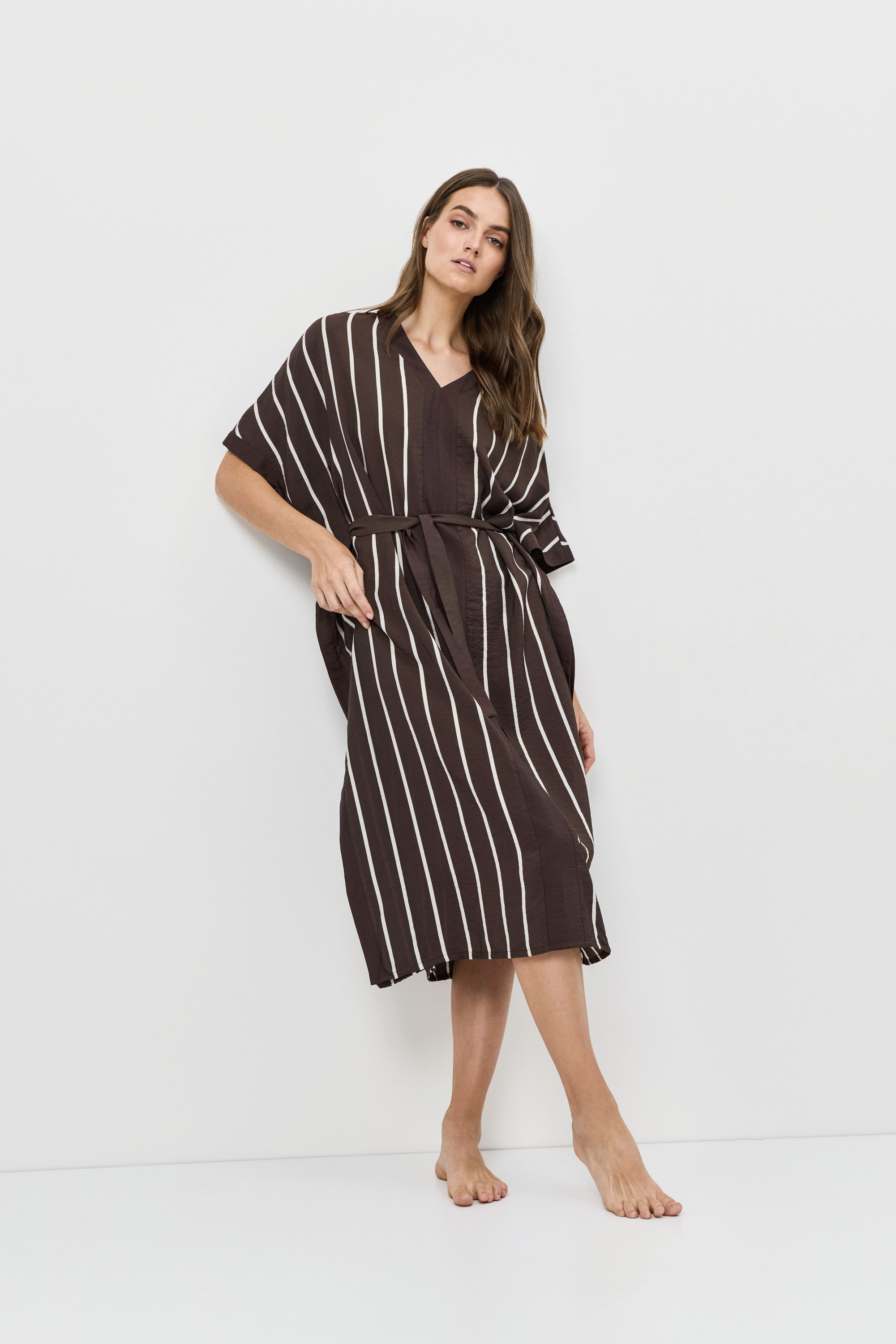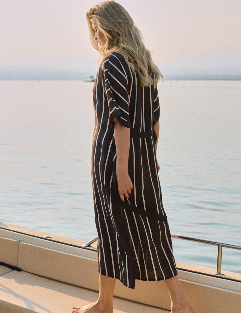 Длинное платье-туника CEDAR от литовского бренда Aruelle выполнена из креп-вискозы с добавлением нейлона в насыщенной шоколадной расцветке с вертикальными кремовыми полосками. Идеальное сочетание лёгкости и комфорта, созданное для спокойных прогулок или морских путешествий.