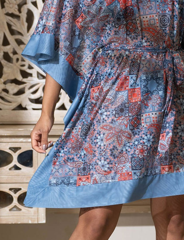 Женская туника для пляжа TUNIS 7440 от Mia-Amore предлагает стильный свободный крой и удлиненную линию плеча для максимального комфорта. Изготовленная из мягкой гигроскопичной сетки, она дарит ощущение пляжной невесомости. Яркий геометрический принт гармонично сочетается с любым купальным костюмом.