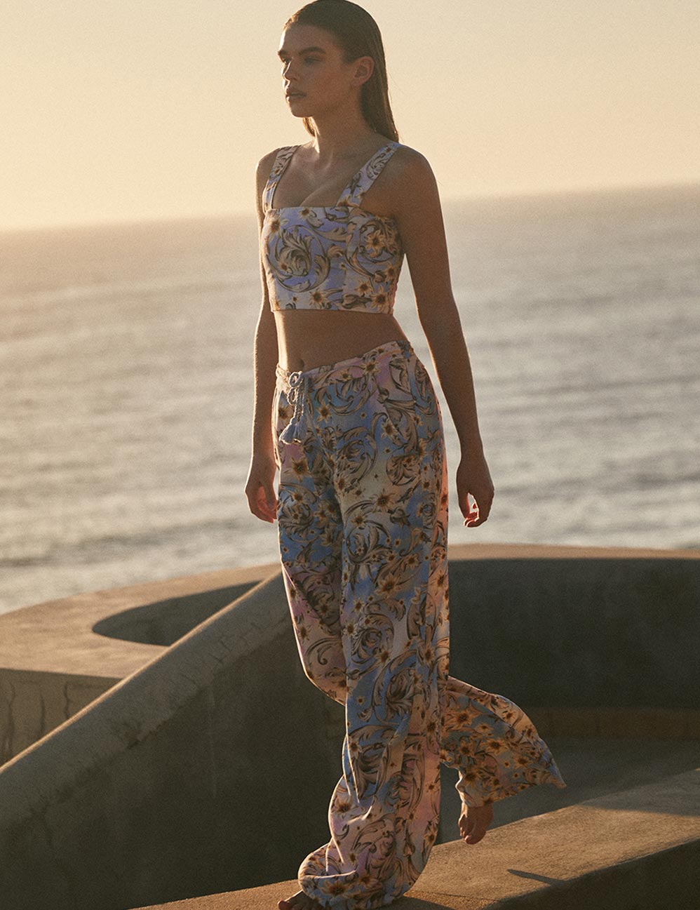 Лёгкие брюки от колумбийского бренда Agua Bendita модель 12289 CAROLINE NUMEN из натуральной вискозы спасут от палящего солнца, идеально сочетаясь с купальниками разных стилей и фасонов.