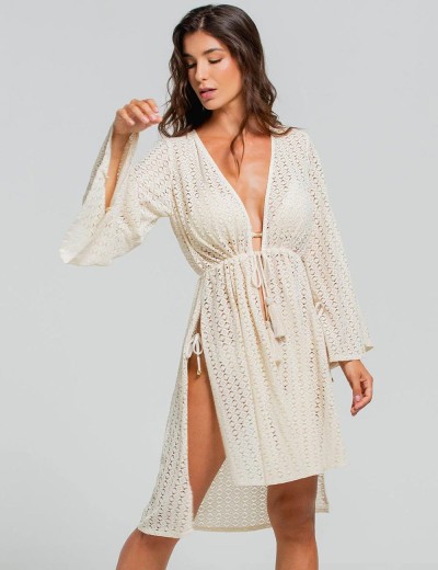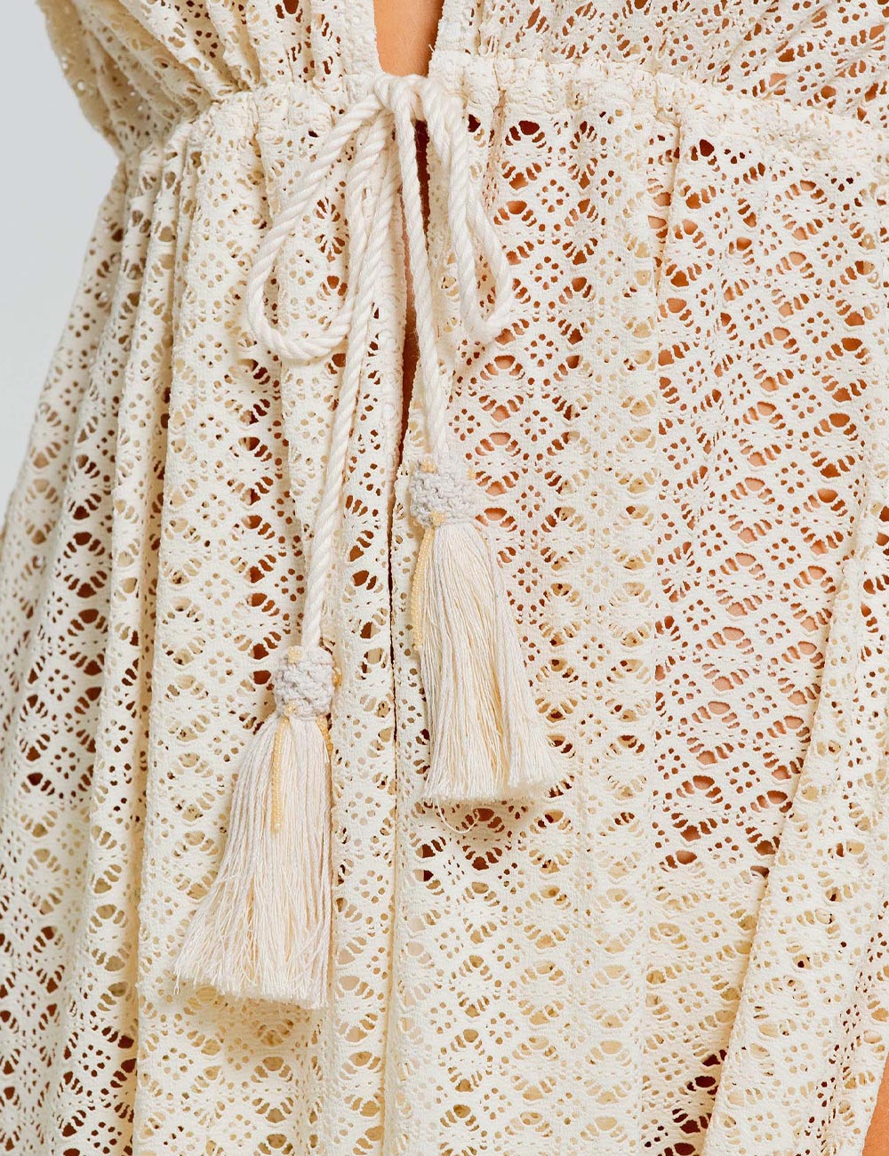 Утонченный пляжный халат Cosita Linda CLC26121 из коллекции ETHEREAL NATURE связан вручную крючком, дополнен изящными кистями, которые плавно колышутся при каждом движении. Легкий и утонченный, он идеально гармонирует с купальником, формируя элегантный образ для отдыха.