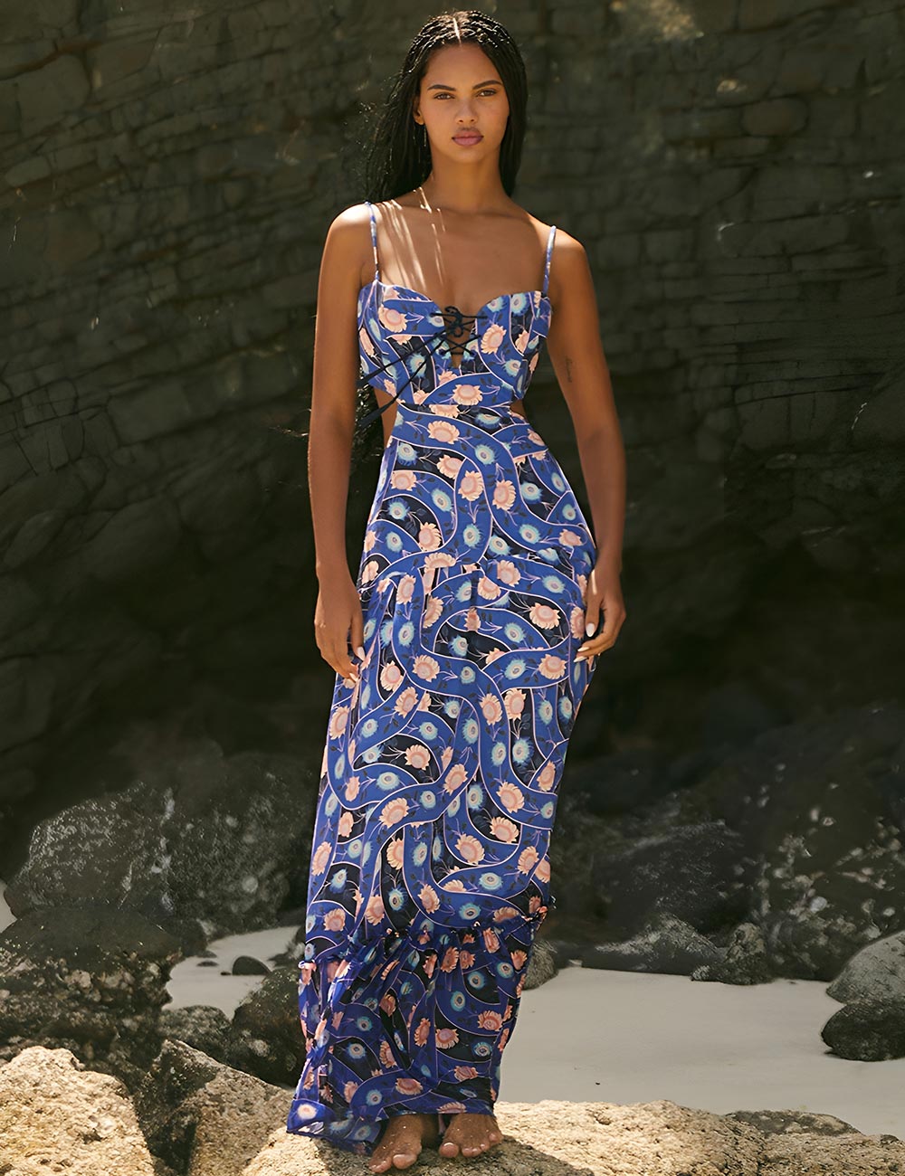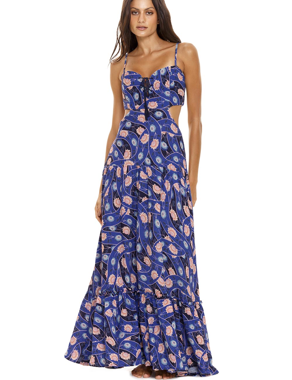 Лёгкий сарафан от колумбийского бренда Agua Bendita модель 12778 CAPRICE BOREAL выполнен из смесового полотна вискозы со льном в насыщенном синем цвете с цветочным принтом. Струящаяся ткань позволит создать летящий, романтичный образ, заставит забыть о высокой температуре даже знойным днем.
