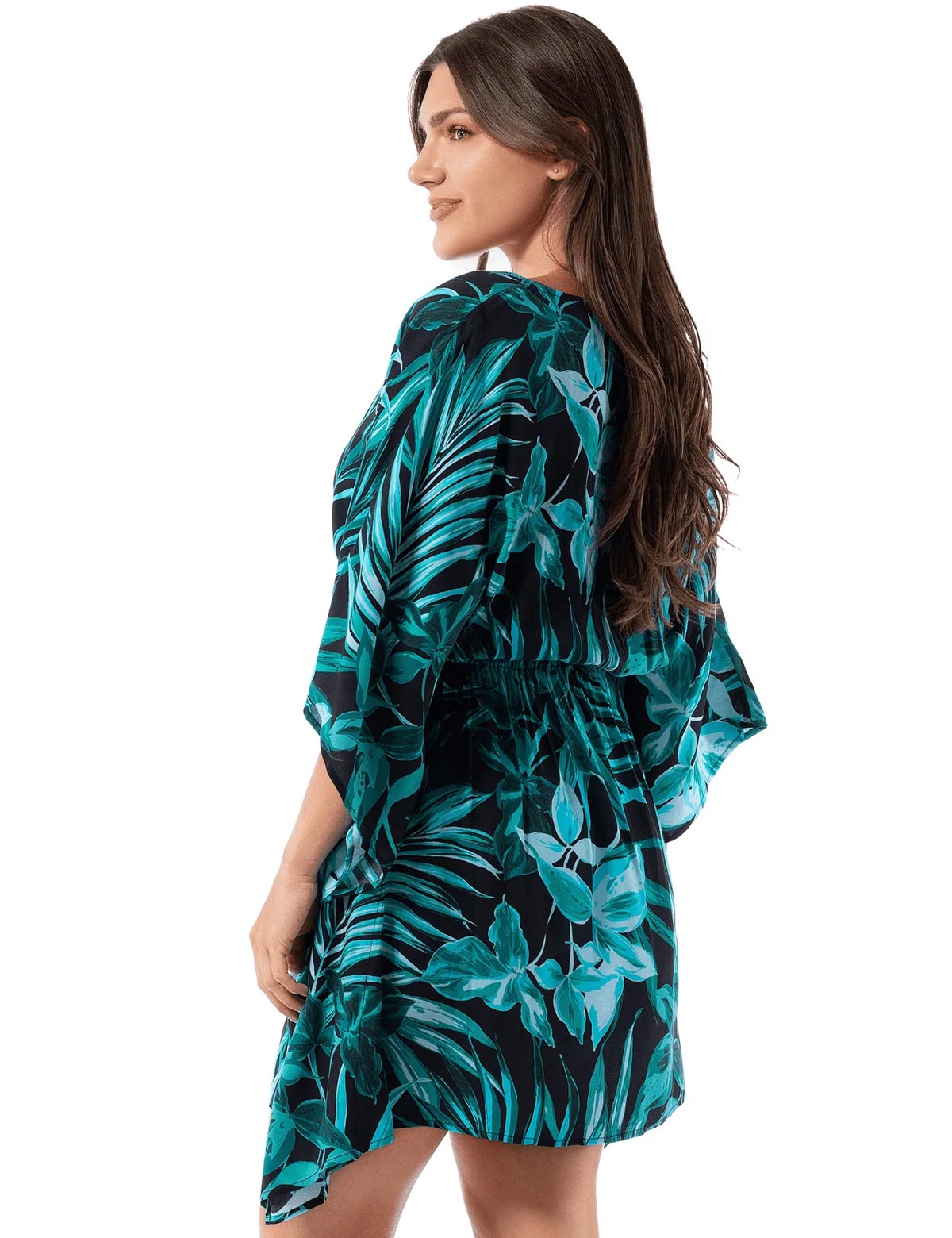Пляжная туника американского бренда Jantzen модель JZ25090C выполнена из 100% вискозы в красивой расцветке - крупный флористический принт на чёрном фоне. Свободный крой и дышащий материал спасают от жары и защищают кожу от ярких солнечных лучей.