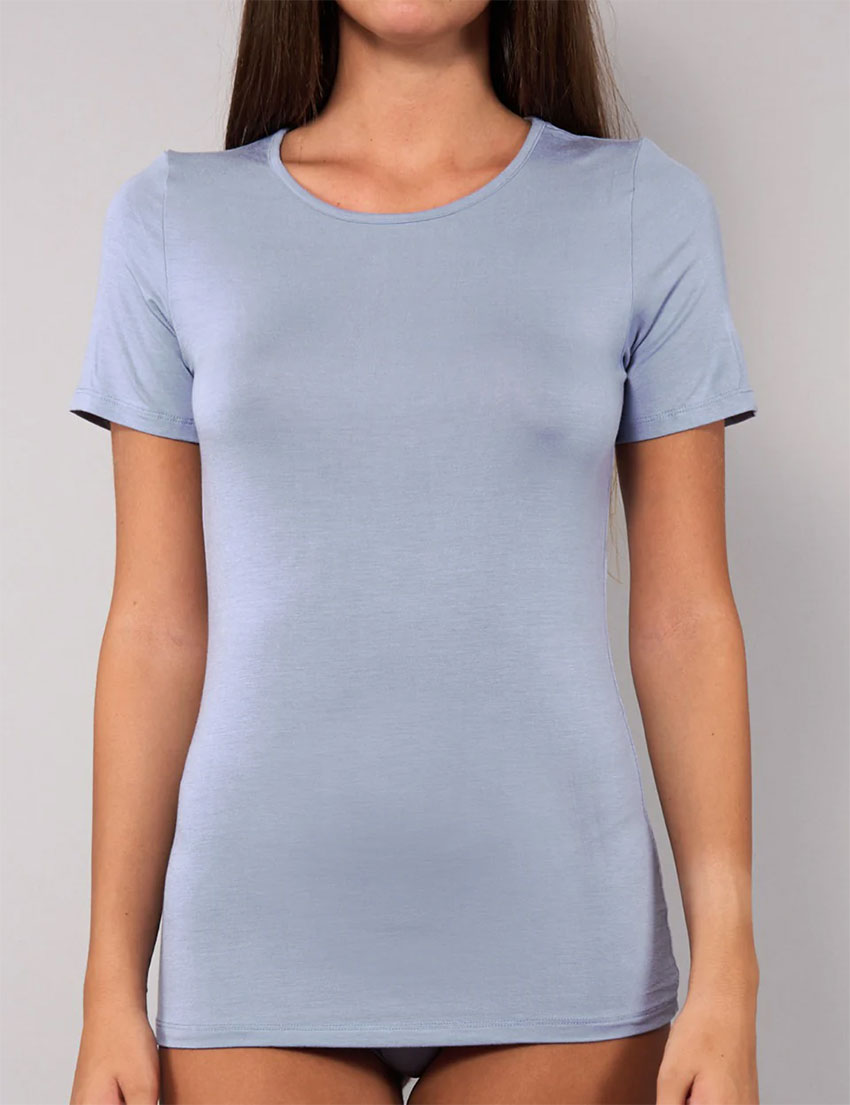 Женская футболка TODAY 6010 от итальянского бренда Sielei выполнена из мягкого дышащего модала, приятного на ощупь. Круглый вырез горловины добавляет элегантность и комфорт. Приглушенно синий оттенок, вдохновленный джинсовой тканью - для casual стиля и солнечных дней.