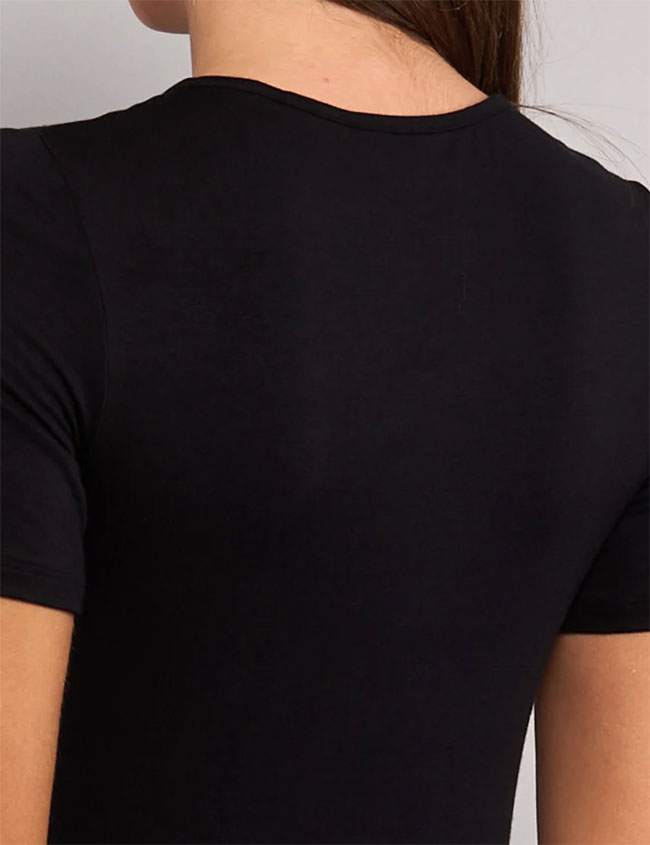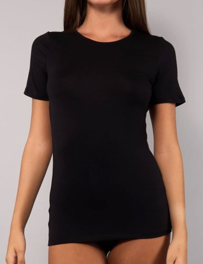 Женская футболка TODAY 6010 от итальянского бренда Sielei выполнена из мягкого дышащего модала, приятного на ощупь. Круглый вырез горловины добавляет элегантность и комфорт. Классический глубокий черный цвет, универсальный и элегантный, подходит для любого настроения и гардероба.