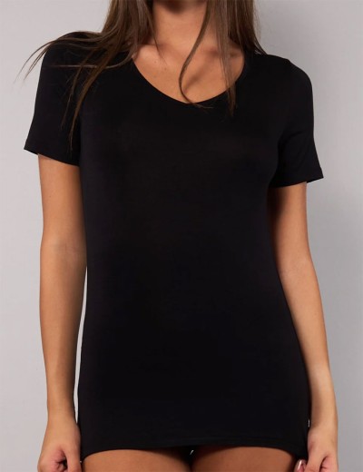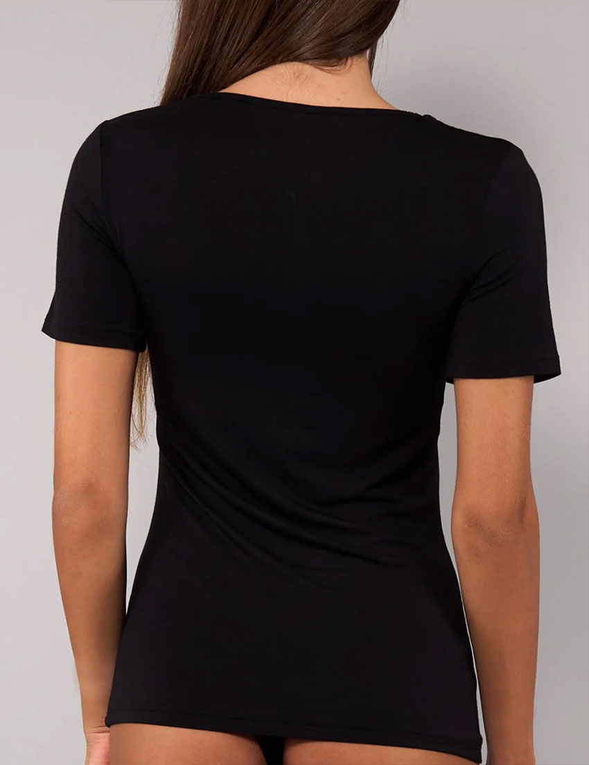 Футболка с коротким рукавом Sielei 6008 из коллекции TODAY – универсальная и комфортная, идеальная под одежду в прохладные дни. Выполнена из мягкого, дышащего модала, приятного для тела и отлично пропускающего воздух. Классический глубокий черный, универсальный и элегантный, подходит для любого настроения и гардероба.