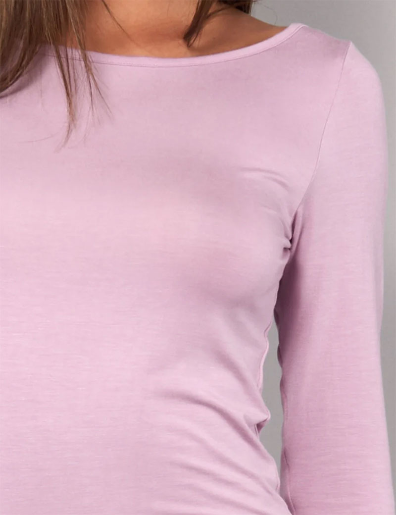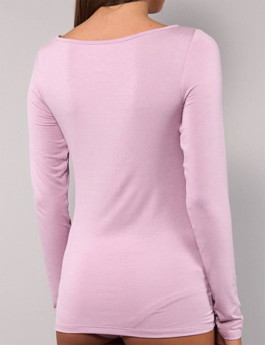 Кофта с вырезом-лодочкой Sielei 6014 из коллекции TODAY изготовлена из мягкого, дышащего модала в лилово-розовой расцветке. Вырез-лодочка делает образ более лёгким и женственным, визуально расширяет плечи и подчёркивает шею и ключицы.