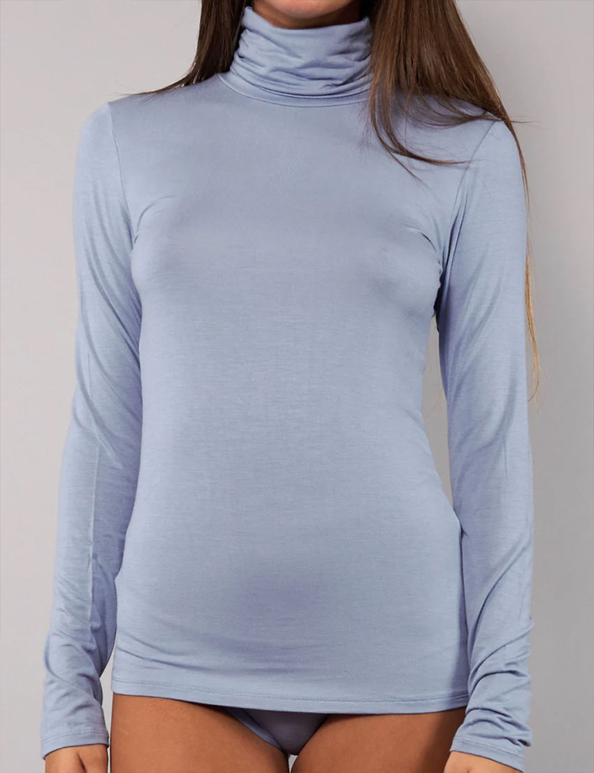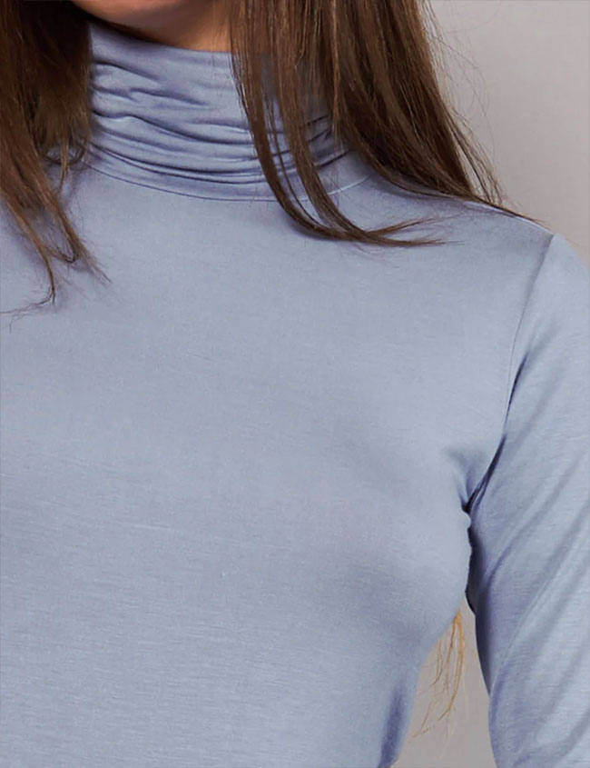 Женская водолазка Sielei 6020 из коллекции TODAY легко комбинируется с разными стилями — от casual до офисного. Выполнена из мягкого, дышащего модала в приглушённо-голубой расцветке. Отлично подходит для межсезонья и холодного времени года как самостоятельный элемент одежды или базовый слой под жакеты, кардиганы и свитеры.