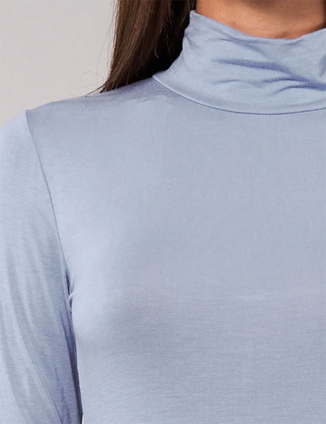 Боди-водолазка Sielei 6018 из коллекции TODAY в голубом оттенке деним пробуждает ощущение уверенной элегантности и повседневного комфорта. Мягкий и лёгкий модальный трикотаж естественно облегает фигуру, обеспечивая свободу движений, а высокий воротничок и чёткие линии кроя вдохновляют на многослойные образы — от соло с джинсами до ношения под жакеты и блейзеры.