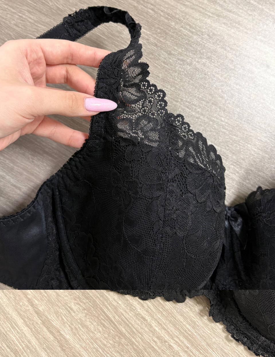 - внешняя сторона чашки - кружево идет по бретели вверх и переходит в плечо