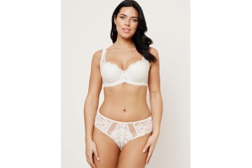 Бюстгальтер BELLA Full Cup от Subtille — молочный кружевной балконет с поролоновыми чашками и вертикальными рельефами для идеальной поддержки. Открывает декольте, акцентируя верх груди. Идеален для широкой грудной клетки и упругой груди — естественная красота, комфорт и элегантный силуэт в одном.