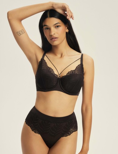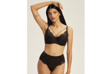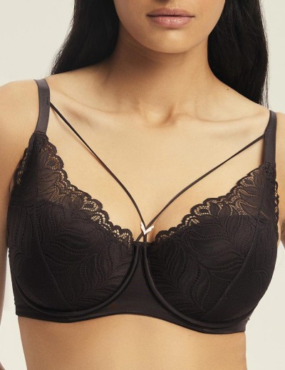 Поролоновый бюстгальтер 43584 KORIN от бренда Esotiq выполнен в насыщенном тёмно-шоколадном цвете и отличается стильным и комфортным дизайном. Мягкое эластичное кружево в сочетании с мерцающим атласом создаёт эффектный текстурный контраст, подчёркивая элегантность. Конструкция бюстгальтера обеспечивает надёжную поддержку и идеально формирует грудь. Особого внимания заслуживают чувственные резинки с декоративной скользящей деталью в зоне декольте, которые придают изделию уникальный акцент и делают его идеальным элементом нижнего белья.