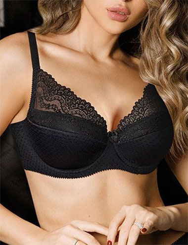 Чёрный бюстгальтер Albina L 8085 из коллекции ETUDE с сшивными поролоновыми чашками идеально формирует и поддерживает среднюю и большую грудь. Изготовленный из набивной микрофибры в точку и мягкого кружева, он станет превосходным выбором для любого наряда, обеспечивая комфортную и идеальную посадку.