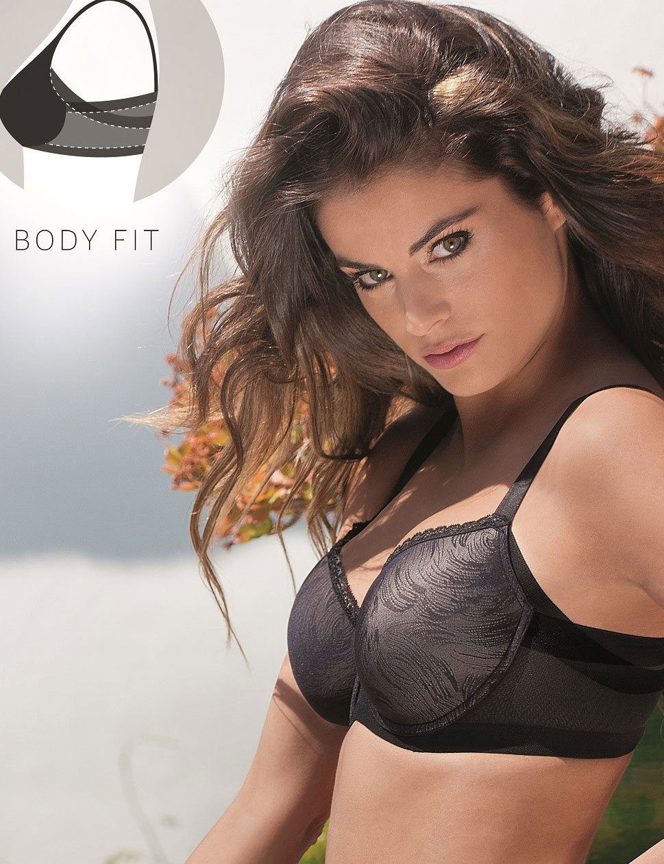 Черный бюстгальтер с широким поясом Selene VIOLETA для женщин с пышной грудью, разработан специально для скрытия и уменьшения неровностей в боковой и подмышечной части, обеспечивает идеальное прилегание и комфорт. Формованная чашка поддерживает грудь и придает ей идеальную форму, ее внешняя сторона декорирована эластичным полотном с жаккардовым орнаментом. Двухслойные боковые панели внахлест выполнены из полупрозрачного сетчатого полотна с бесшовными краями.