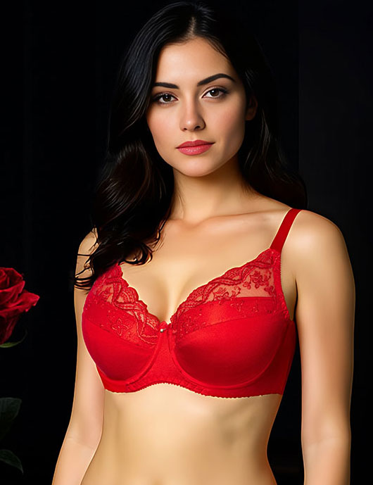 Красный нарядный бюстгальтер Albina L 8084 из коллекции CAROLINA — огненный балконет с сшивными поролоновыми чашками, который мастерски поддерживает и приподнимает среднюю или большую грудь, собирая её в идеальную форму для уверенного шика! Эластичная микрофибра, неэластичная вышивка и сетка дарят комфорт и лёгкость, делая его идеальным для повседневных искр или романтичных вечеров.