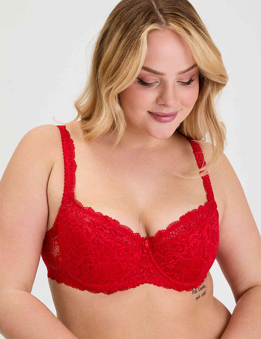 Кружевной бюстгальтер на поролоне Lina A 6086 красный