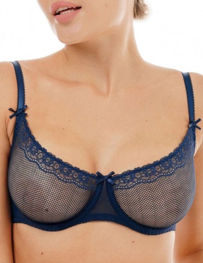 Мягкий кружевной бюстгальтер Sermija 124-09-L синий сапфир