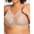 Бюстгальтер больших размеров Glamorise GI1003 из гладкой микрофибры белого цвета. Глубокие чашечки-минимайзеры без косточек делают силуэт плавным, уменьшая грудь на целый размер, а эксклюзивная конструкция MagicLift приподнимает пышный бюст, обеспечивая непревзойденную посадку и поддержку. Вставки из эластичного кружева с цветочным орнаментом добавляют женственности. Широкий пояс с эластичной резинкой по нижнему краю плотно прилегает и сглаживает неровности. Расширенные спереди набивные бретели на мягкой подкладке снижают нагрузку на плечи.
