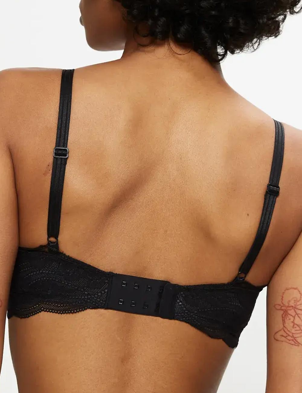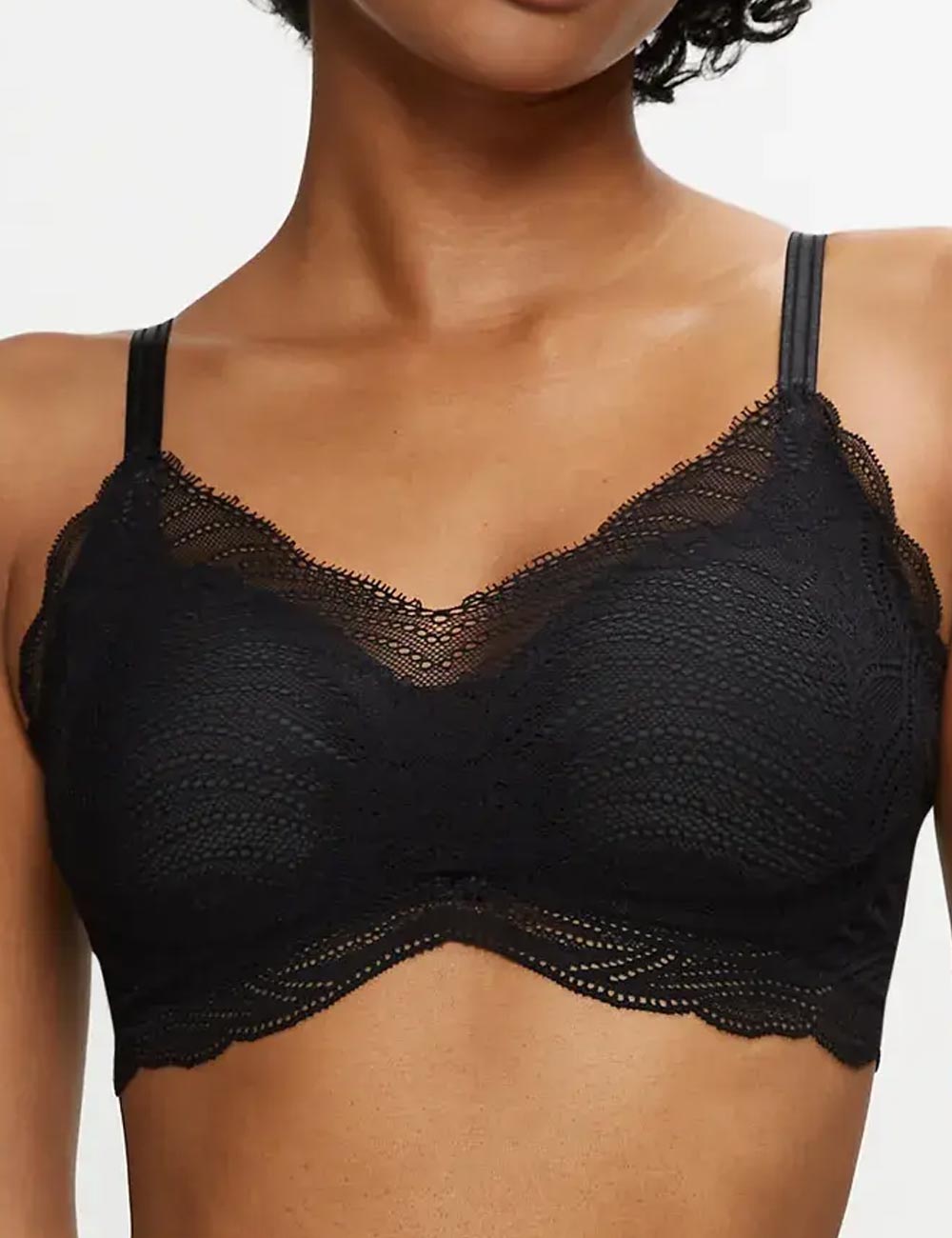 Triumph LIFT SMART P EX — бескаркасный бюстгальтер с уплотнёнными чашками, который создаёт естественный и незаметный эффект пуш-ап, обеспечивая комфорт на протяжении всего дня. Чашки и боковые панели выполнены из переработанного однослойного эластичного кружева в чёрном цвете, что придаёт изделию элегантный вид и экологичность.