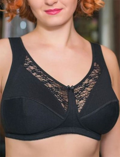 Комфортный бюстгальтер-минимайзер VALIJA 1145 от Valmira – без каркасов и боковых пластин, идеален для всего дня. Выполнен в черном цвете из мягкого хлопка с тиснёным ромбическим узором и кружевной вставкой. Закрытая чашка обеспечивает надежное расположение груди, а боковой подкрой приподнимает и центрирует грудь. Широкие бретели на поролоне равномерно распределяют вес, избавляя плечи от усталости.