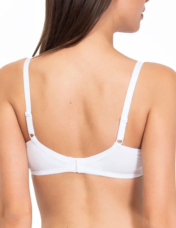 Бюстгальтер с мягкой французской чашкой Sielei модель NATURAL COTTON 1440 без косточек, в белой расцветке. Натуральный органический хлопок, из которого изготовлена модель, был собран вручную, что обеспечивает высокое качество и экологичность модели. Аккуратные чашечки из двойного слоя ткани придают естественную форму груди небольшого размера, обеспечивая поддержку и комфорт.