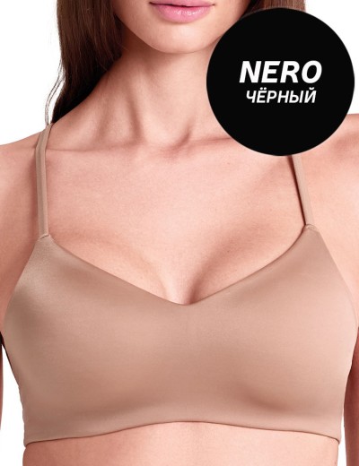 Бесшовный бюстгальтер-топ ACTIVE от бренда Lormar базового черного цвета, выполнен из блестящей шелковистой микрофибры, с суперлегкой мягкой формованной чашкой без косточек. Перекрещивающиеся бретели добавляют удобство и универсальность, делая модель идеальной для спорта и повседневного образа.