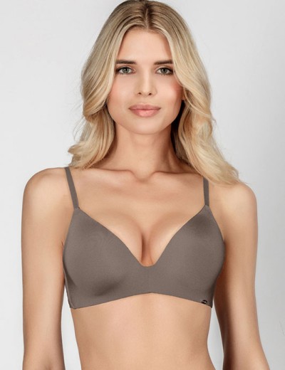Модный бескаркасный бюстгальтер Amelie 2018 из коллекции MILLA оригинального цвета какао. Гладкие бесшовные чашки выполнены по запатентованной технологии. Уплотненные валики, заменяющие традиционные косточки, устраняют дискомфорт, натирание и сдавливание. Бюстгальтер анатомически облегает грудь, правильно ее формирует и обеспечивает комфорт в течение всего дня. Бретели можно перестегнуть в двух позициях.