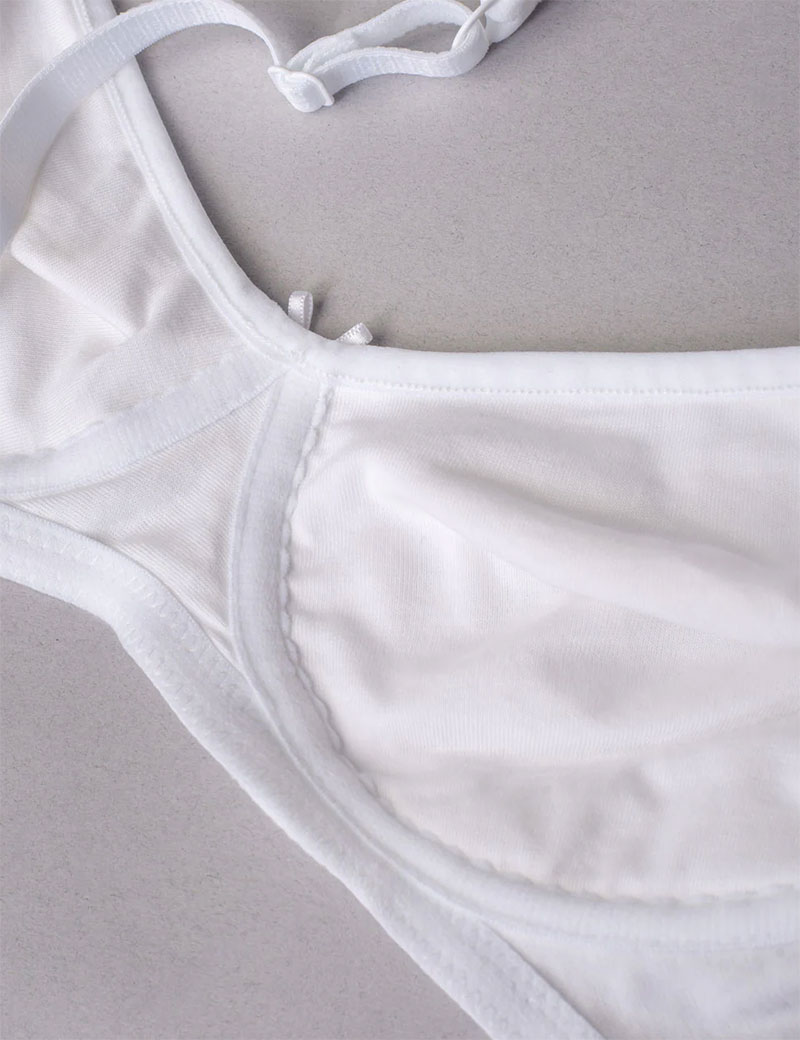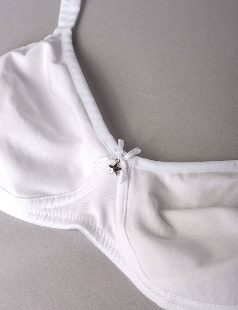 Женский бюстгальтер от бренда Sielei, модель NATURAL COTTON 1452 в белом цвете, выполнен с мягкими чашечками без каркасов. Скрытый элемент из тонкого поролона в нижней трети чашки обеспечивает деликатную поддержку. Модель сшита из натурального органического хлопка ручного сбора, что гарантирует её высокое качество и экологическую чистоту.