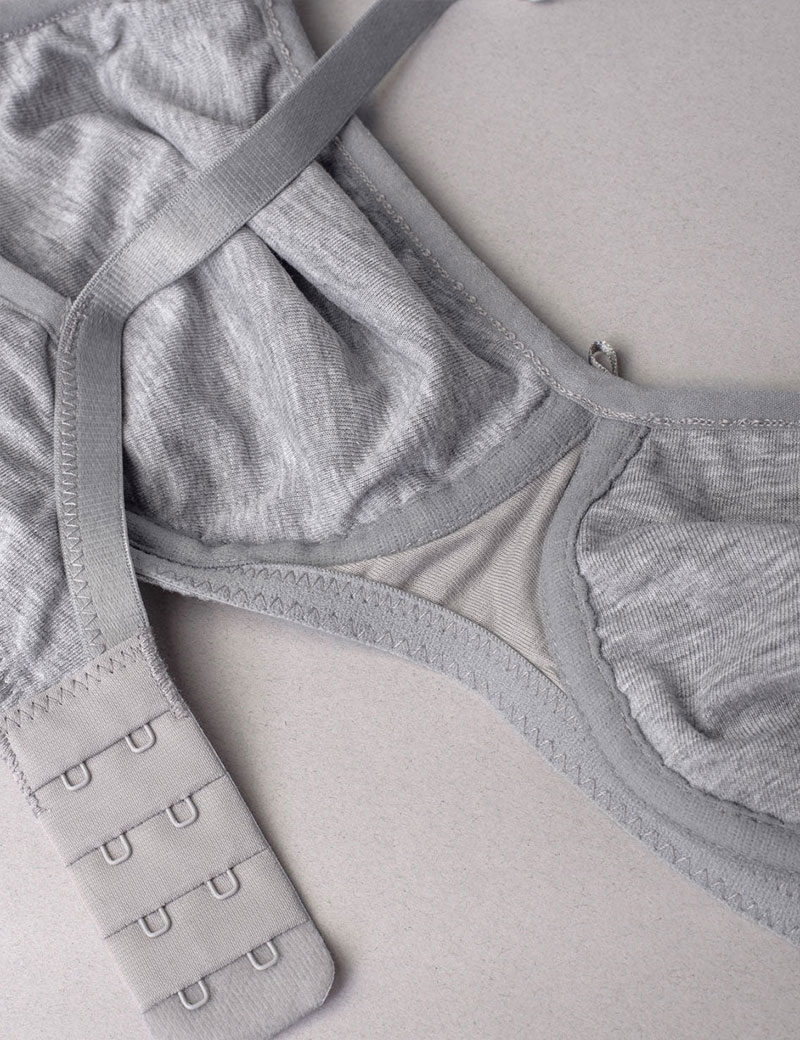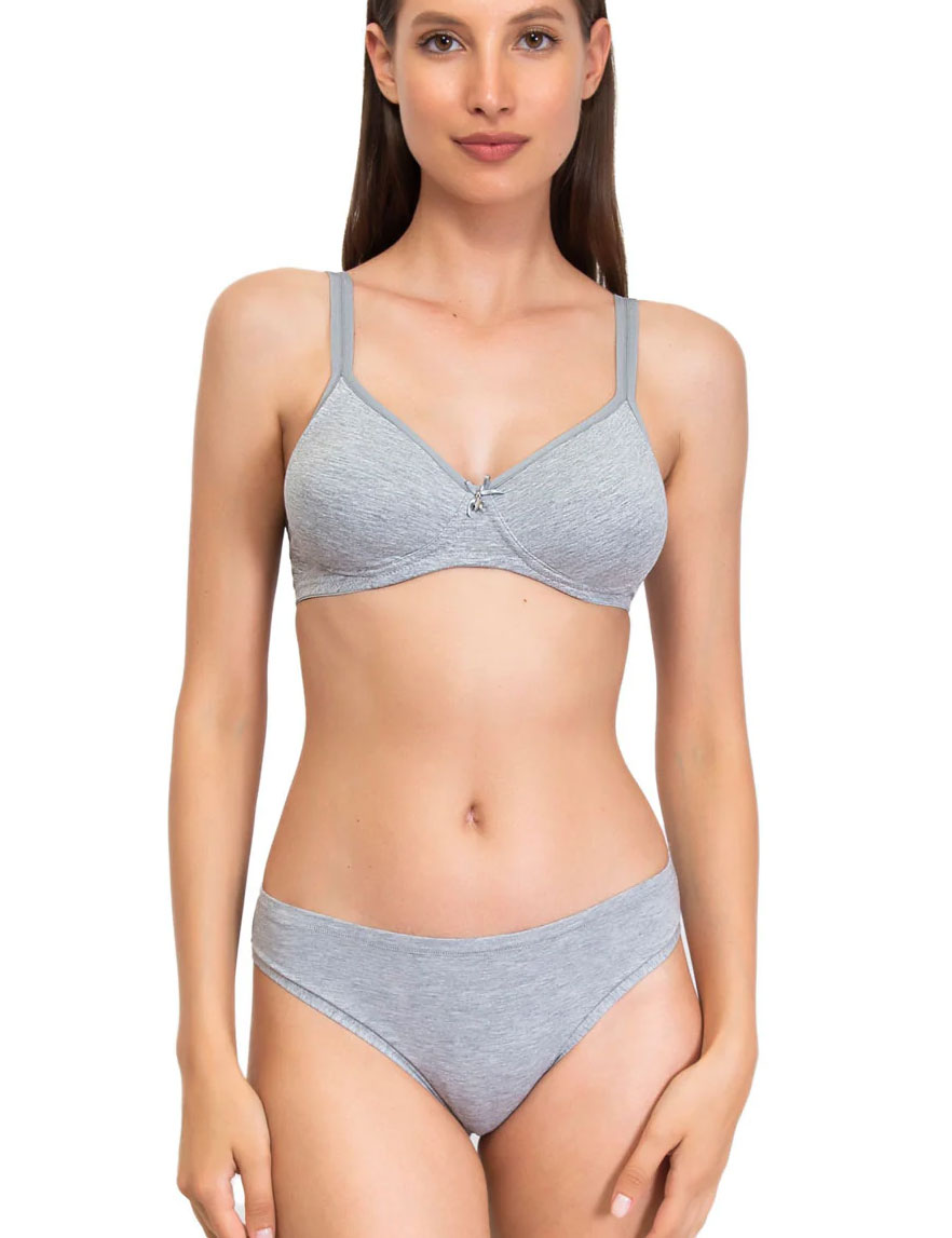 Женский бюстгальтер от бренда Sielei, модель NATURAL COTTON 1452 в сером меланжевом цвете, выполнен с мягкими чашечками без каркасов. Скрытый элемент из тонкого поролона в нижней трети чашки обеспечивает деликатную поддержку. Модель сшита из натурального органического хлопка ручного сбора, что гарантирует её высокое качество и экологическую чистоту.