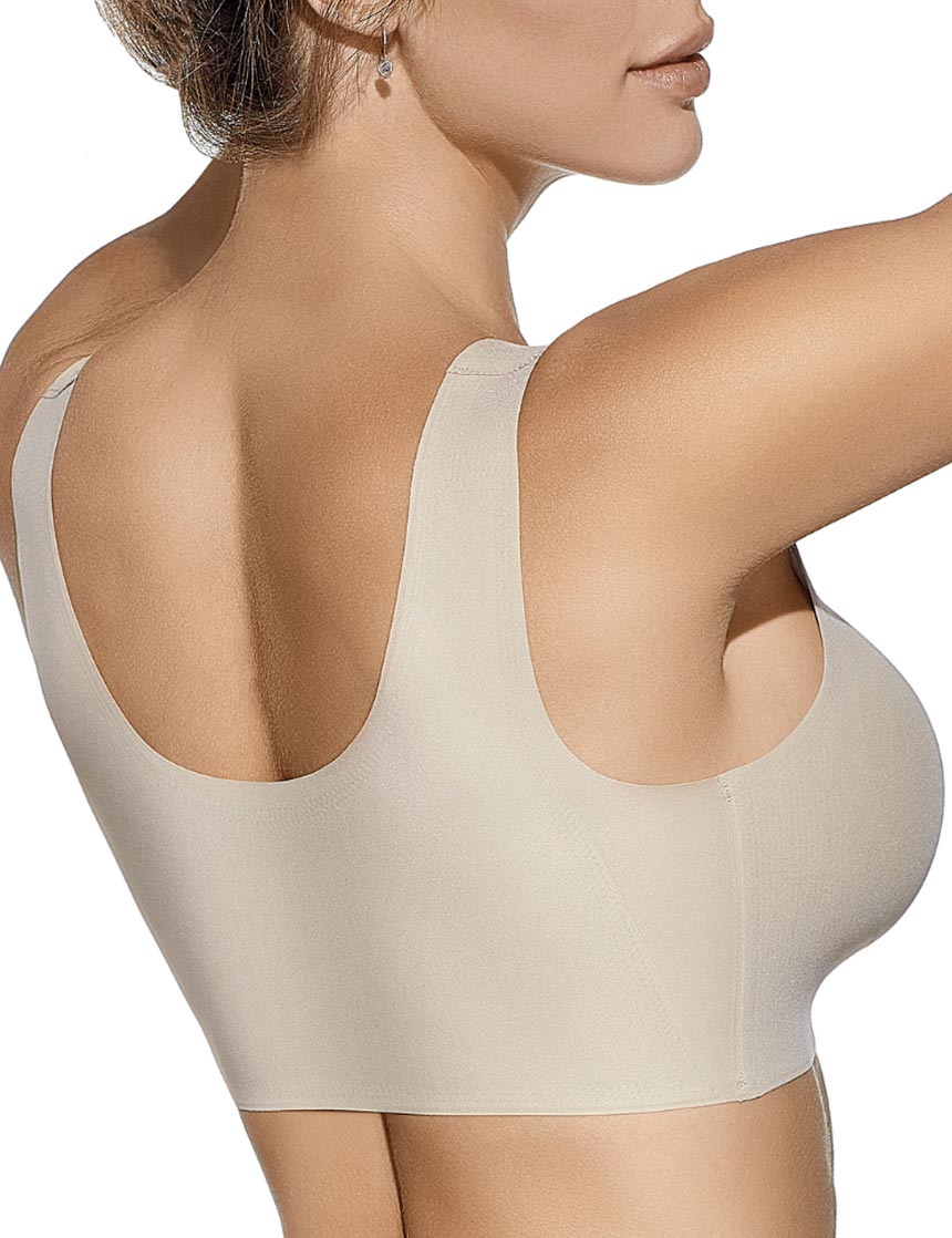 Эластичный топ Selene OLIVIA натурального серо-бежевого оттенка — двухслойный бюстгальтер из гладкого эластичного полотна с вынимаемым съемным вкладышем. Благодаря широким бретелям и отсутствию застежки, модель предоставляет максимальный комфорт и практически не чувствуется на теле. Очень удобный в качестве домашнего бюстгальтера.