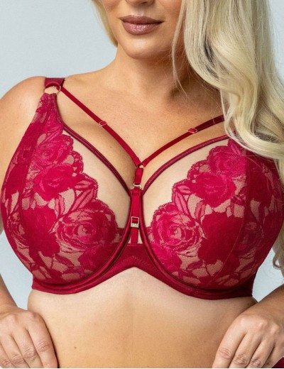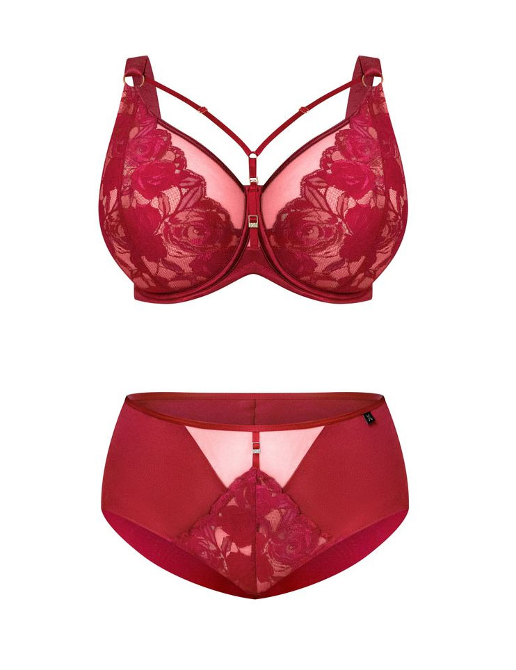 Бюстгальтер-бралетт CHERRY от Kris Line — роскошная нежность в насыщенном вишнёвом оттенке. Мягкие чашечки из телесной сетки, обрамлённые полупрозрачным кружевом, плавно перетекают в бретели, а тончайшие стрэп-ленты над грудью мягко касаются кожи, не нарушая гармонии.