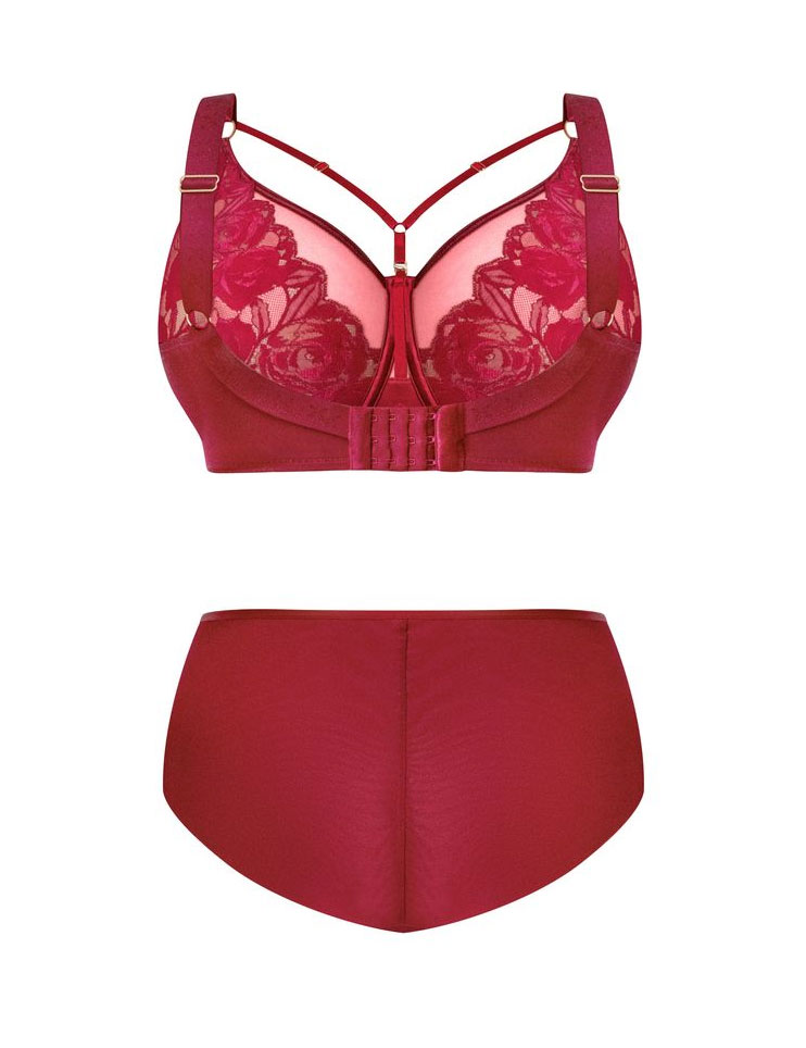 - чашка из прочной телесной сетки снаружи украшена треугольным сшивным кружевом